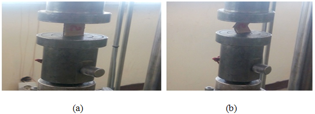 Compression test: The compression strength testing was performed on hybrid Bamboo/Sisal fiber reinforced epoxy composite in a laboratory experiment. In this section, the prepared specimen was involved in axial compression loading using the UTM. The dimension of the specimen is (25x25x3.17) which is prepared according to ASTM D3410. To obtain the result of the compression test, the specimen is inserted into the test fixture which is placed between the plates of the testing machine and loaded in compression. The maximum load attained was recorded by the UTM testing system after the specimen failed. A typical specimen failure is shown in Figure 2.