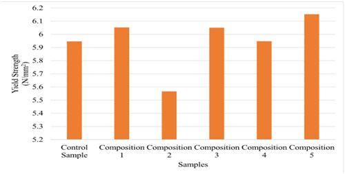 Figure 2 Variation of Yield Strength of aluminum 6063, single reinforced composites (Al/SiC and Al/PBSA) and aluminum hybrid composite (Al/SiC/PBSA).