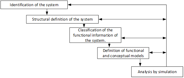Identification of the system: The main objective of this stage is the conceptualization of the system to model, it begins with the analysis of the system functioning, to indicate the functions, the principal elements that compose it, and the operating conditions.