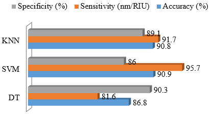 Table 1 Outcome of accuracy, sensitivity and specificity through DT, SVM and KNN