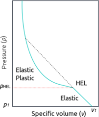 Figure 2 Relationship between specific volume and pressure within a material below and above its HEL.