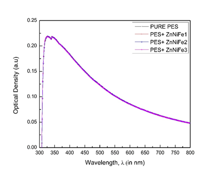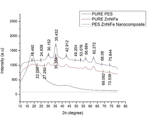 Keywords: polyethersulfone, zinc-nickel ferrite nanoparticles, spin coating technology, ultra violet (UV-Vis), Scanning electron microscopy (SEM), photoluminescence, atomic force microscopy (AFM), Fourier transform infrared spectroscopy (FTIR), X-ray diffraction (XRD)