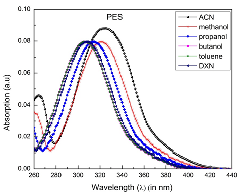 Table 4 Solvatochromic data for a molecule of polyethersulfone (PES) in the different solvents