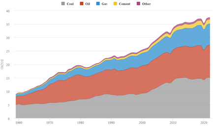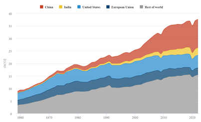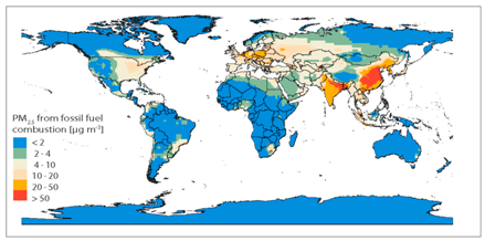 Figure 1 Surface PM2.5 originating from fossil fuel combustion, calculated by chemical transport model GEOS-Chem. Statistical data and image cited from Vohra et al.3