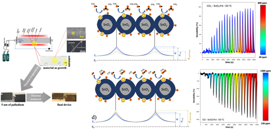 Figure 6 Palladium decorated SnO2 nanobelts networks for detection of CO and CO2.55