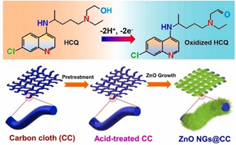 Figure 7 Zinc oxide nanograins on carbon cloth as flexible electrochemical platform for hydroxychloroquine detection.163