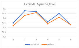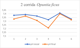 In the study by Bravo,4 background information is presented where it is evident that Opuntia ficus indica presents a better performance for turbidity, heavy metals, BOD5 and COD removal at low pH, managing intervals between 3 - 8.