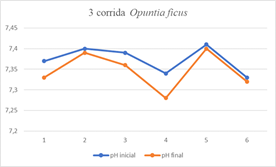 Graph 3 pH change with the coagulant Opuntia ficus indica - Third evaluation.