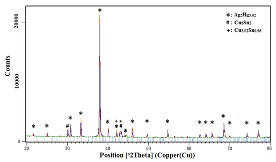 Alloys made with mercury and other metals are known as amalgam. Dental amalgams are important alloys having mercury (Hg≈40-50%) as a main component and include silver (≈22-39%), tin (≈12-18%) and copper (≈2-18%). Considering the content of dental amalgams, due to the combination of silver, tin and copper in the structure, they have high economic value.1,2 The mixing of silver and other elements and mercury is known as amalgamation. During this process, metallic powders are dissolved in the mercury along the surfaces, and this process leads to the formation of new phases in the structure. These new solid phases result in the plastic state of amalgam. At the end of amalgamation, resulting phases are rigid. The metallurgical phases that are occurred as a result of these reactions are shown in detail in Table 1.3 The metallurgical properties belonging to these phases are complex and the final phase varies according to the content of the starting alloy. In case of Ag-Sn alloy containing copper below 4%, amalgam become harder and stronger but more brittle. In contrast, if the alloy contains copper about 4-5%, separate Cu3Sn phases form in the structure. These phases increase the workability of amalgam and decrease the fragility.3 Basic reactions which occur during amalgamation are as follows: