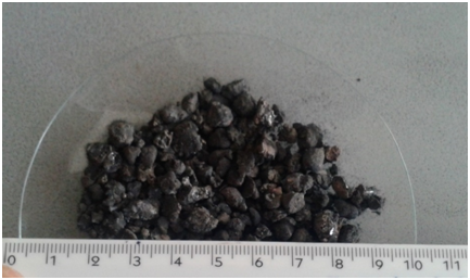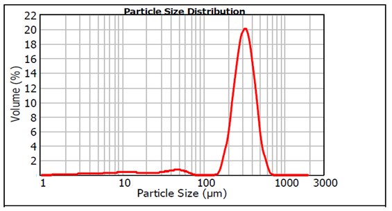 Dental amalgam waste subjected to this experimental study was supplied from Istanbul Technical University Medical Health Center. Dental amalgam wastes were characterized by PANalytical X’PERT PRO XRD as shown in Figure 1. It shows that the phase analysis of the amalgam waste that are similar to the ones given in the literature. Furthermore, existence of Ag2Hg3.02, Cu6Sn5 and Cu3.02Sn0.98 phases as main components in the amalgam structure shows that the material is a high copper amalgam. After distillation process, mercury free dental amalgams produced were used in experimental study shown in Figure 2. Experimental procedure included grinding, leaching, and cementation steps. Distilled dental amalgam samples were wet ground with SPEXTM Mixer Mill for 90 minutes. Grinding media/material ratio was selected as 5/1. Wet milling was performed by using ethanol. Ground material was sieved below 315µm and dried in oven at 200°C for six hours. Dried powder was leached in 50% HNO3 at a solid/liquid ratio of 1/5 for four hours. After leaching and solid/liquid separation, both solid residue and leach liquor were analyzed by X-Ray Fluorescence (XRF) Spectrometer and Atomic Absorption Spectrometer (AAS), respectively. Later, cementation experiments were carried out at different pH values and different stirring speeds. Cementation was carried out with copper powder. Particle size analysis of copper powder, carried out by Malvern Mastersizer 2000, is shown in Figure 3. Results showed that the average particle size (d50) was determined as 313.17 µm. SEM image of copper particles is shown in Figure 4.