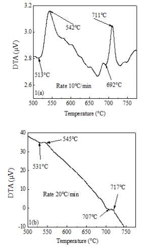 Table 1 Effect of heating rate on 1st and 2nd crystallization of Fe72.5Cr1Nb3Cu1Si13.5B9 alloy