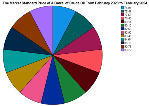 The Market Standard Price of A Barrel of Crude Oil From February 2023 to February 2024 |