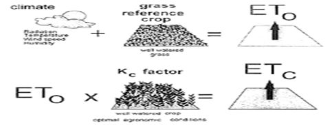 Different plants or crops have inherent different rates of evapotranspiration (Figure 4) because of difference in leaf size and geometry, size of the stomata, roughness of the leaves hence the aerodynamic resistance, as well as height above the ground. Additionally the rate of evapotranspiration will vary over time depending on the environmental and growth factors (wind speed, air humidity, temperature, leaf area and solar radiation intensity).