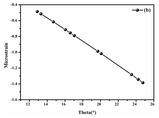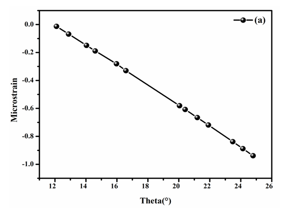θ is the range of the considered Bragg reflection. The technique of XRD is used to investigate structure parameters such as microstrain. The determination of microstrain is important for industrial applications. The microstrain is calculated using the following equation:7