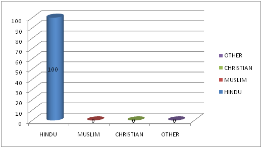 Graph 3 The above table revels that majority of the respondents 50(100%) were Hindu, 0(0%) were Muslim, 0(0%) were Christian, 0(0%) were other.
