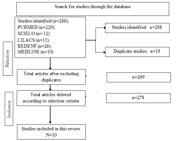 Figure 1 Flowchart of selection of primary studies included in this integrative review (n=10), adapted according to the preferred reporting items for systematic reviews and meta-analyses (Prisma) Model (Mother; Liberati; Tetzlaff; Altman; Prisma, 2009). Alfenas, Mg, Brazil, 2023.