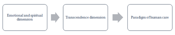 According to what has been written so far, human beings must be careful so that, in turn, they learn to take care of themselves; and with it, in him same impulse of caring is generated. Thus, care appears as a loving, welcoming and enveloping attitude. It has already been said that Boff proposes a new paradigm, which, in fact, determines the essence of the human being: that of caring as an attitude towards oneself, but also towards the world for this is necessary to address the emotional and spiritual dimension of one's own reason and the elements that compose it, since it is probable that, by doing this, it will be possible to better understand the complexity of the human being and the role he must play in the cosmos (Figure1).