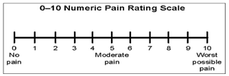 Numerical Rating Scale (ΝRS) consists of а straight horizontal bar or line with 2 endpoints (the 11-point numeric scale ranges from 0 to 10). Zero usually represents one pain extreme ‘no pain at all’ whereas the upper limit '10' represents the other pain extreme ‘the worst pain, imaginable, ever possible’. Every woman is asked to circle her pain level on the line between the two endpoints. The distance between ‘no pain at all’ and the mark then defines the subject’s pain Figure 1.