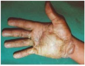 Figure 6 Part of the hand that was reached by a second third degree burn.