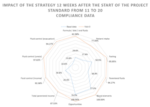 Compliance with general care: Of the standards related to the taking of height, weight and perimeters: PAE 8, 9 and 10, the baseline data were 44.78%, 42.08%, 67.50%, respectively, having significant advances up to 92.6%. % for 8, 94.3% for 9 and 10 for 100%. The standard 11, 12 and 13 proper to 11: Formula / Diet / oral fluids. - The baseline data is 29.63%, increasing to 92.6% with the awareness of the staff to record on the nursing sheet properly and correctly the medical indication regarding diet; 12: Patient intake. - 27.61% was the compliance in the baseline data, increasing to 77.4% with the recording of the detailed description of the food ingested by the user, allowing a better control of the income. 13: fasting.- the initial figure of 50.50% extending the compliance record to 96%.