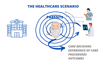 Figure 1 Model of patient-centered care where the neonate is valued as the patient, by health professionals and their parents, and decisions and procedures result from this interaction (this figure was made by the authors).