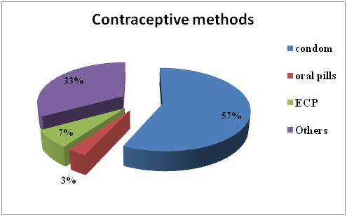 During 2009-2010 the total number of family planning acceptors by different methods was condom users -8.0 million, oral pill users 4.47 million, IUD insertion -4.92 million. However about 53.5 % eligible couples are still unprotected against contraception. During the year (2009- 2010) 46% of eligible couples in the reproductive age group were effectively protected against conception by one or other family planning methods. During the study which was conducted in 2014 shows that condom users was 99% and skin implants 86%,emergency contraception users was 85%.oral pills users was 85%. The right to plan one’s family gives rise to a governmental duty to ensure that women and men have equal access to a full range of contraceptive choices and reproductive health services and that they have accurate information about sexual and reproductive health. The last few years have witnesses a contraceptive resolution. The contraceptive methods are preventive methods to help women to avoid unwanted pregnancy. They include all temporary or permanent measures to prevent pregnancy resulting from coitus. A method which is quite suitable for one group may be unsuitable for another because of different cultural patterns, religious beliefs and socio-economic milieu. A full range of contraceptive methods includes male and female condoms, barrier methods, oral contraceptives, implants, injectables, intra uterine devices, female sterilization and emergency contraceptive.1