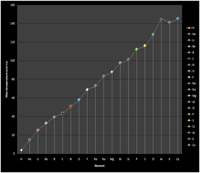 Also, the theory is formulated assuming the system is composed only of atoms. As such, the temperatures are considered to be high enough for bond energies of all compounds to be reached and that atomic processes such as fusion and fission do not occur. This temperature limit differs with respect to the different elements, since it depends on the molar mass. Thus an element with a higher molar mass will have a higher temperature limit.