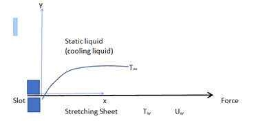 The hydromagnetic flow and heat transfer over a surface have practical, industrial and engineering applications in the streamlined expulsion of plastic sheets, paper creation, glass blowing, metal turning, drawing plastic film, aerodynamic expulsion of plastic sheets, condensation process of metallic plate in the cooling bath and expulsion of a polymer sheet from a colour. Ali J Chamkha1 solved general boundary layers governing steady, Laminar, hydromagnetic flow with heat and mass transfer over a permeable cylinder moving with a linear velocity in the presence of heat/absorption, chemical reaction, suction/injection effects and uniform transverse magnetic field using standard, fully implicit, iterative, tri-diagonal finite difference method.Aziz A2 obtained a similarity solution for a Laminar boundary layer flow over a flat plate with a convective surface boundary condition. Bhattacharyya & Gorla3 solved the axisymmetric boundary layer flow and heat transfer past a permeable shrinking cylinder subject to surface mass transfer using finite difference method of quasilimearization technique. Bhattacharyya & Layek4analyzed the distribution of a reactant solute undergoing first order chemical reaction in the boundary layer flow of an electrically conducting incompressible fluid over a permeable stretching sheet subjected to suction or blowing using finite difference method of quasilinearization technique. Also,Bhattacharyya k,5 considered the effects of heat source /sink on the steady two dimensional MHD boundary layer flow and heat transfer past shrinking sheet with wall mass suction using finite difference method of quasilinearization technique. Emmanuel, Maurice Arthur et al.6 investigated the hydromagnetic flow over a flat surface with convective boundary condition and internal heat generation in the presence of chemical reaction using Newton-Raphson Shooting method along with fourth order Runge-Kutta algorithm. Gnaneswara & Sandeep7 analyzed the heat and mass transfer in Carreau fluid flow over a permeable stretching sheet with convective slip condition in the presence of applied magnetic field, nonlinear thermal radiation, cross diffusion and suction/injection effects using Runge-Kutta and Newton’s method. Also, Nayak8 considered a steady MHD flow of a viscous conducting fluid past a stretched permeable vertical permeable surface with heat generation/Absorption, thermal radiation and chemical reaction using Runge-Kutta method based on Shooting technique. Prakash et al.9 10.0pt;" examined the hydromagnetic two dimensional boundary layer flow of a non-Newtonian fluid accompanied by heat and mass transfer towards an exponentially stretching sheet in the presence of chemical reaction and thermal radiation using casson model. Sulochana & Kishor Kumar10 used shooting technique to analyze the heat and mass transfer in magnetohydrodynamic flow over a stretching sheet in the presence of thermal radiation and chemical reaction. Seth et al.11 used exact solution in closed form and numerical solution to investigate an unsteady hydrodynamic natural convection flow with heat and mass transfer of a viscous incompressible, electrically conducting, chemically reactive and optically thin radiating fluid past an exponentially accelerated moving vertical plate with arbitrary ramped temperature, embedded in a fluid saturated in a porous medium. Also, Hayatet al.12 obtained convergent series solutions for a boundary layer flow of a Nano fluid over power-law stretched surface in the presence of applied magnetic field and chemical reaction with heat and mass convective conditions. Ishak13 provided a similarity solution for a steady, Laminar, boundary layer flow and heat transfer over a permeable flat plate in a uniform free stream with the surface of the plate heated by convection from a hot fluid. Also, Makinde & Olanrewaju14 analyzed the effects of thermal buoyancy on the laminar boundary layer about a vertical plate in a uniform stream of fluid under a convective surface boundary condition using fourth order Runge-Kutta iteration scheme. Olanrewaju et al.15used Shooting iteration technique with sixth order Runge-Kutta integration scheme to analyze the effects of internal heat generation, thermal radiation and buoyancy force on the Laminar boundary layer flow about a vertical plate in a uniform stream of fluid under a convective surface boundary condition.