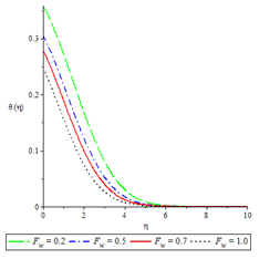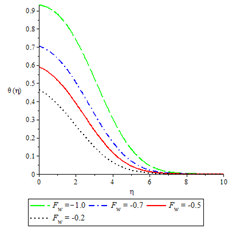 Table 4 Computation of the values of the coefficient of skin-friction , Gr=0.1,Gr=0.5 and for various values of Fw and M with Sc=0.24, n=1 and Pr=0.72, Br= λ=Bi=0.1