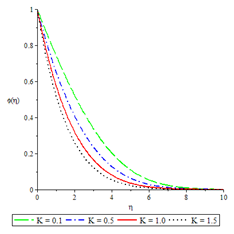 - For a chemical reaction of first order when n=1 and in the absence of buoyancy force and heat source/sink i.e when