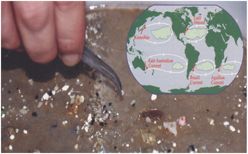 Figure 1 Pictured are the ocean gyres, which are only in the zones 300 north and south of the equator and spin clockwise in the northern hemisphere and counterclockwise in the southern hemisphere.