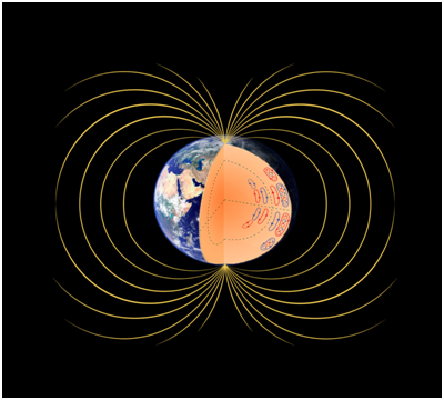 Figure 2 Pictured are the ring currents induced by the earth spinning in the liquid magma, which crank the magnetic field of the earth.