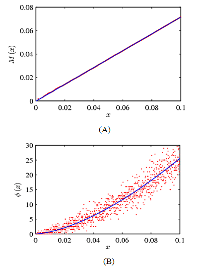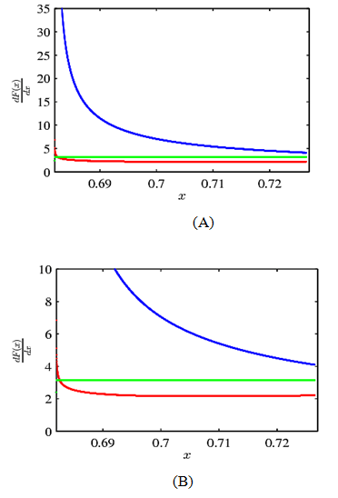 From Figure 1(A) we can observe the theoretical RPD cannot approach accurately the numerical RPD. Beside this, the numerical RPD verifies the conditions and bounded therefore following the previous theorem the function slope must be Using the date shown in Figure 1(B) we can calculate in agreement with the theory.