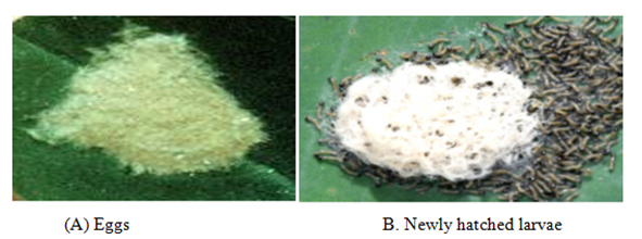 Castor is an important crop grown in tropical world. Castor cake is used in agriculture as organic manure due to its high nitrogen content. The world castor seed production has fluctuated from a low of 937,000tones to a high of 1,488,000 tones. It contributes about 62% of the world production and ranks first. The top producer of castor seed in India is Gujarat, with 86percent share, followed by Rajasthan and Andhra Pradesh. Among the several factors that contribute to low productivity of castor, the insect pests constitute the major factor. Crop suffers heavily due to attack of various pests, which reduces their yield. Oriental leaf worm moth Spodoptera litura is a Noctuid moth which is considered as a serious but sporadic agricultural insect pest causes economic losses of crops from 25.8-100%15–17 based on crop stage and its infestation level in the field. It is also known as the Cluster caterpillar, Cotton leaf worm, Tobacco cutworm, and Tropical armyworm. It is one of the most economically important insect pests in many countries including India, Japan, China, and other countries of Southeast Asia. After emergence between 2 and 5days, female lays 1000-2000eggs on the lower surface of host plant. The egg is round and dirty white. Eggs hatched between 4-5days. The newly emerged larva is whitish and then turns yellow green an hour after with a pattern of red, yellow, and green lines from the head to the anal region. As the larva grew bigger, the body turns brown with 3 thin yellow lines down the back. The body of the newly emerged larva is cylindrical, head size is wider than. In perspective of the damage caused by such insects, the objectives of the present research were to assess the efficacy of two insecticides belonging to two different categories on mortality, malformation, longevity, pre-oviposition, oviposition, post-oviposition, fecundity and fertility of one lepidopterouspolyphagous pest, Spodoptera litura (Figure 2).