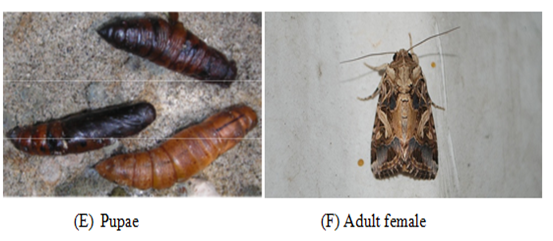 Adults of Spodoptera litura were collected in night near lamp posts in the Aligarh Muslim Campus during August to October. Several pairs of adults were kept in separate circular rearing jars made of glass measuring 8”×4”. The bottom of the jars was fitted with wet and sterilized sand which was about two inches in thickness. The tops of the jars were covered with muslin cloth which was tightly fixed by means of rubber bands. All the rearing jars were kept at 28±1°C temperature and 70-80% relative humidity. The moths were fed on saturated glucose solution. For this purpose, a piece of sterilized cotton wool was wrapped around a micro-slide and it was soaked with fresh sugar solution. This soaked slide was obliquely placed against the jar wall. A freshly soaked slide was daily replaced. The females laid eggs on the white paper strips that were placed in the rearing jars. The paper strips along with eggs were placed in fresh jars for hatching. Following the hatching of the eggs, young larvae were given tender castor leaves for feeding. The jars having larval stages were daily cleaned and fresh leaves were provided daily. When the larvae reached to late 6th instar they were transferred to separate jars containing 3-4inch thick layer of slightly damp sand for pupation.