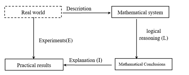 According to Mette Sofie Olufsen (2003), teachers begin with some observations about the real world. The teachers want to make some conclusions, predictions about observed reality. One way to proceed (E) is to conduct some experiments and record the results. Then the teachers will model in different ways. Firstly, teachers summarize or compile some of the important features of the real world into a mathematical system. Then, by logical reasoning (L) the teacher derives some mathematical conclusions. These conclusions are then explained (I) as predictions about the real world. To be useful, the mathematical system should predict the real world conclusions to be actually observed when appropriate experiments are performed. If the predictions from the model are less similar to what actually happens in the real world, then that model is not the best. Model designers should take into account important features that will not be manipulated in the context of research or other views about the relationship between these features. On the other hand, if there is a good deal between what is observed and what the model predicts, then there are some reasons to believe that the mathematical system does not really grasp the important facets of precision of the actual situation (Figure 2).
