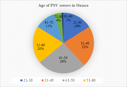 These results show that approximately 50% of the sowers are between 31 and 50 years old, which indicates that young people are already staying in the fields and do not tend to migrate to the big cities as in the past in this state of the country; which is extremely interesting since it guarantees that future generations will continue to work the land in the short term and will be able to provide food for Oaxacan families and for the rest of the country.