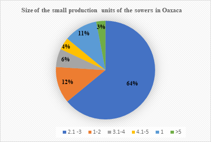 These data are directly related to the number of active and economic dependents of the sowers, since 88% of the cases have less than two economic dependents, while 11% have between three and five economic dependents and only 1% have more than five economic dependents of the sower; It was also found that 87% of the sowers have less than two economically active people in their families in Oaxaca, while 12% have between three and five people and finally 1% of the families have more than five economically active people in their families.