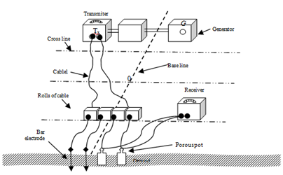Electrodes is a device that connecting transmitter or receiver directly to the earth. There are two kinds of electrodes which used in this experiment, electrodes bar and porouspot. Particles of mineral base metal at electrode bar which have a contact with liquid of rock pores will get different potential to its liquid even if there are no current at all. This makes different relative activities which that amount depends on its relative activities. This kind of potential difference called as electrode potential. If we have injected current to system of mineral base metals, then will happen current polarization at upper border side between mineral base metal and its liquid. This phenomenon called as electrode polarization. We used bar electrode in salt liquid such as base metal Cu in liquid CuSO4 to avoid electrode polarization. A stainless metal will benefit in field operational because it has light weight. Quick and easy in use. Electrode porouspot is an electrode non-polarization. Their potential value did not affect by current that have through, but depend on potential their medium. Electrode porouspot consist of copper bar which immersed in liquid CuSO4 and packaged used porcelain materials that porous at beneath path so liquid can permeate slowly and have contact with soil.