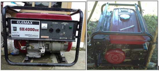 We used generator that used gasoline as source of current plant. This generator has specification as follows. For alternating current (AC), it have voltage about 220 volts, frequency 50 hertz, average output 2,7 kVA, maximum output 3,7 kVA, and phase 1f. We have voltage about 12 volts and current 8.3 ampere for direct current (DC).