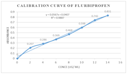 Standard curve of flurbiprofen in methanol: the standard curve of flurbiprofen was prepared in methanol as shown in Figure 1 & Table 1.
