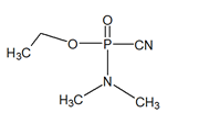 Tabun (GA) is available in liquid form. It can be brown or colorless. The vapor phase is colorless. The first entry into the body is the respiratory system. Figure 4 shows the molecular structure of the Tabun.