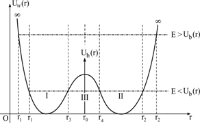 should be in the bound states. When mass m vibrates in this effective potential, the term b of the potential creates an obstacle that tries to prevent vibration motion. This potential comes from the rotation of the mass m, that is, from the centrifugal motion. If there is no rotation, this term is zero. The solution of the Equation