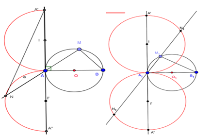 Example 4: Take a semicircle with diameter AB. Point M is mobile on the semicircle. Point N is on ray AM so that . Find the locus of N in each given position of M on the semicircle. We can use Geogebra to exploit the math problem as it follows: Understanding the content of the lesson (Table 4) (Table 5).