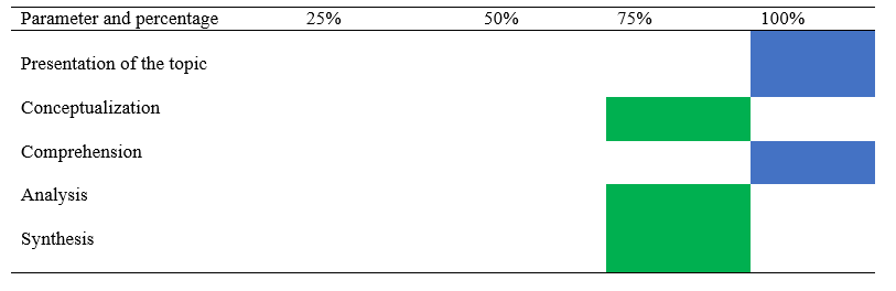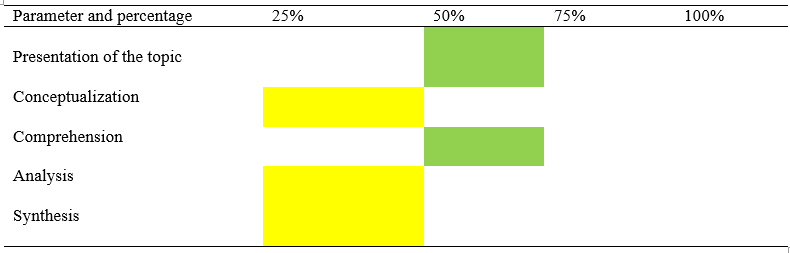 The activities carried out to prepare the article summarize several of the skills that were previously exercised in other teaching situations analyzed here. Writing the article summarizes the students' ability to synthesize, a higher cognitive process, since it requires the combination of basic processes and skills to group parts or elements and form a whole. It involves working with pieces, parts or elements and organizing them in such a way that they establish a model or structure that was not evident until then.