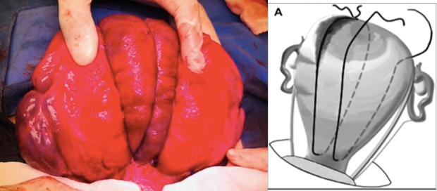 The suture must be performed on each side of the uterus (parallel reins) and, finally, the absence of vaginal bleeding must be verified. In case of persistent bleeding, the uterine arteries were ligation (Posadas technique) or hypogastric artery ligation. The absence of bleeding at the stitches was verified and the success of the procedure was confirmed by vaginal inspection.