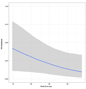 Figure 3 Relation between cervical length measured in millimeters and vaginal delivery likelihood.