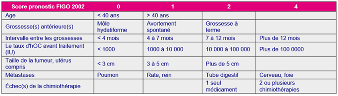 Figure 2 According to the FIGO Score: age >40 years: 1, atcd of pregnancy: mole: 0, interval between pregnancy and start of treatment: < 4 months: 0, beta HCG: 12,000 i.e. score 2, large tumor size: >5 or 2, site of metastasis: lung therefore: 0, 1 lesions on the metastasis between 1-4:1.
