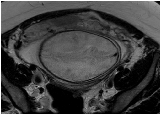 A 31-year-old woman (gravida VI, para III) with no concomitant diseases and a history of prior cesarean section due to placenta previa. During pregnancy was made regular 1st and 2nd trimester ultrasonography to rule out fetal pathology and a low-lying or adherent placenta, but the scan did not show any signs of an abnormal placenta or other problems. On admission 13.06.2016 at 3:15am, the patient presented frequent voiding of urine and pulling abdominal and spinal pain. A day before hospitalization was referred to hospital due to abnormal placentation diagnosed during a routine sonographic examination at 35/36 weeks of gestation. An urgent abdominal ultrasound examination in hospital showed a viable fetus with appropriate biometrical parameters and normal amniotic fluid, while Eco-Doppler images suggested the diagnosis of placenta increta suspecta. Careful evaluation of the placenta with pelvic noncontrast magnetic resonance imaging confirmed the ultrasound diagnosis. The patient was made aware of the potential obstetric complications. An elective cesarean delivery was planned at 36+2 weeks of gestation. Because she had received spinal anesthesia for her previous cesarean sections, this surgery was also planned with spinal anesthesia. The caesarean surgery was performed as usual. 17.06.2016 at 9:05am a healthy female baby, with weight 2,540 g was delivered. In connection with the diagnosis was made hysterectomy, the resulting material was sent to histological examination. The operation lasted 45 minutes and the patient lost a lot of blood. After all the seams are laid in the pelvic floor was left drain and the abdomen was closed using a regular technique. During the surgery, the patient lost 2000 ml of blood and developed severe hemodynamic instability, with a 10% – 20% decrease in systolic blood pressure. A transfusion protocol was initiated. Intraoperative allogeneic red blood cells (556 ml) and free-frozen plasma (988 ml) were transfused. The patient was cared for in the intensive care for one day. The postoperative course was uneventful, and the patient was discharged on day 7 in good conditions.6-8