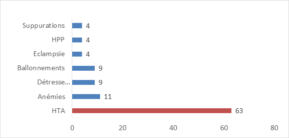 The most common complications encountered in our study were arterial hypertension, followed by anaemia and respiratory distress in the newborn.